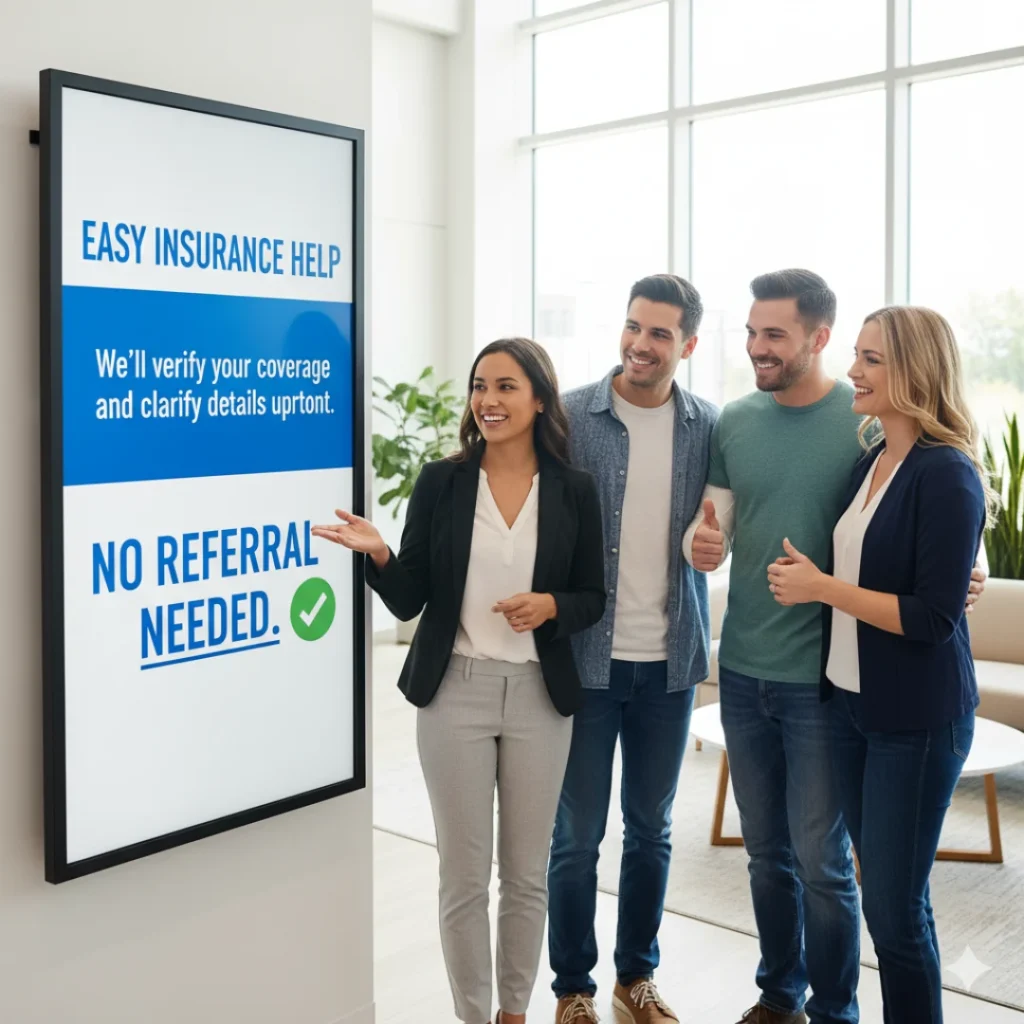We’ll verify your coverage and clarify details upfront. Start your recovery today, no referral needed.